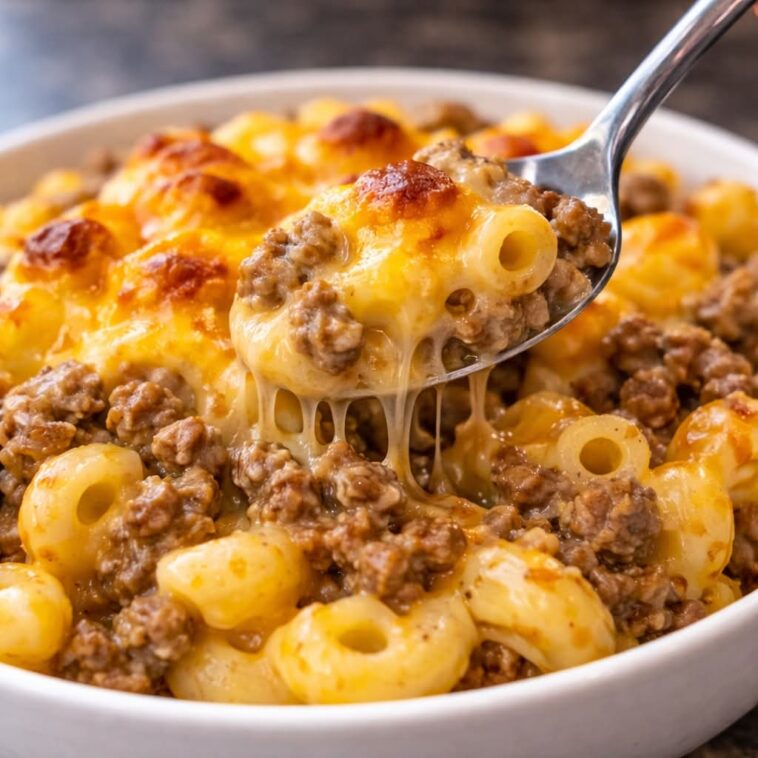 Beefy Cheddar and Macaroni Casserole